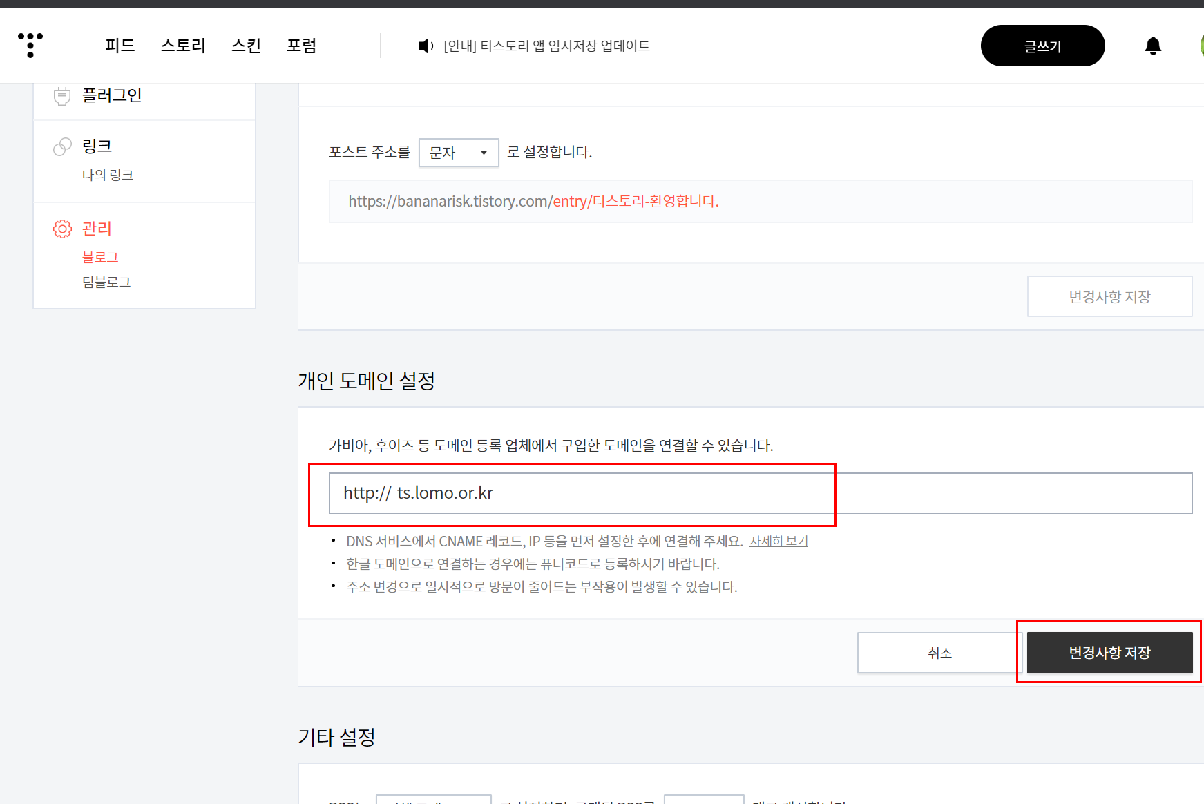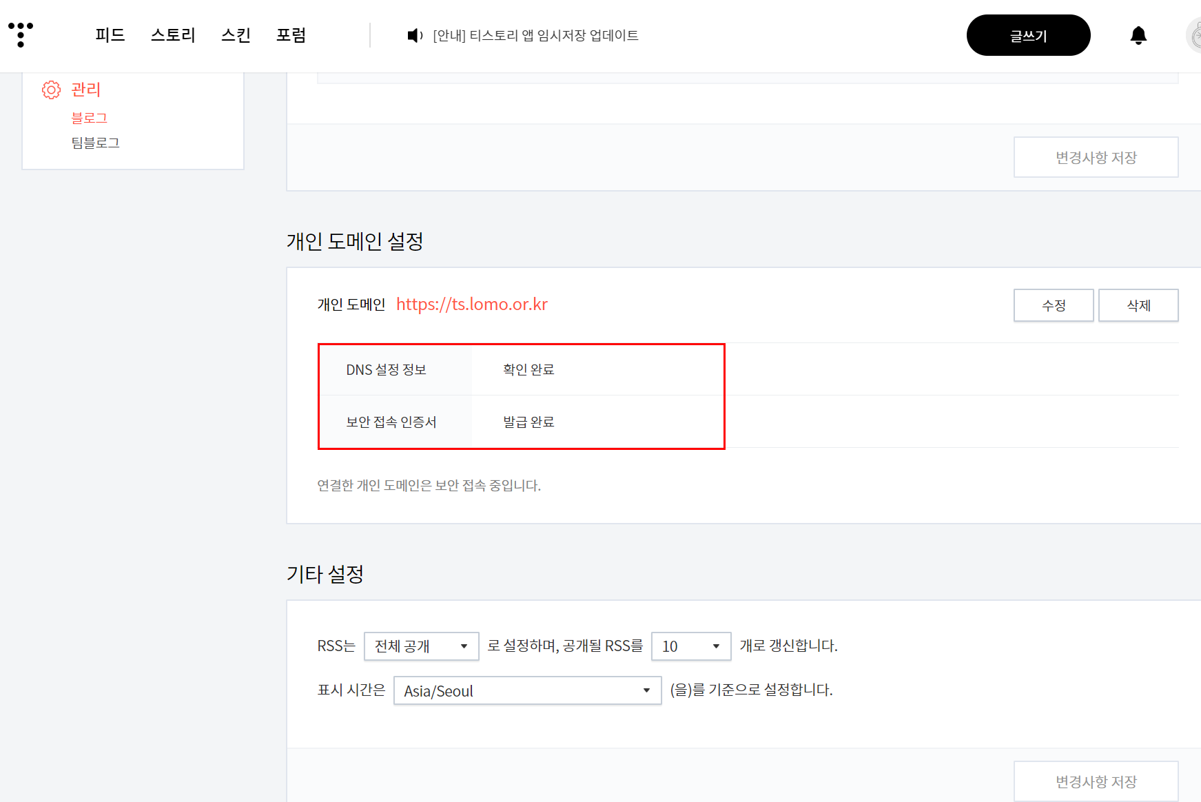 티스토리 2차 도메인 설정 시